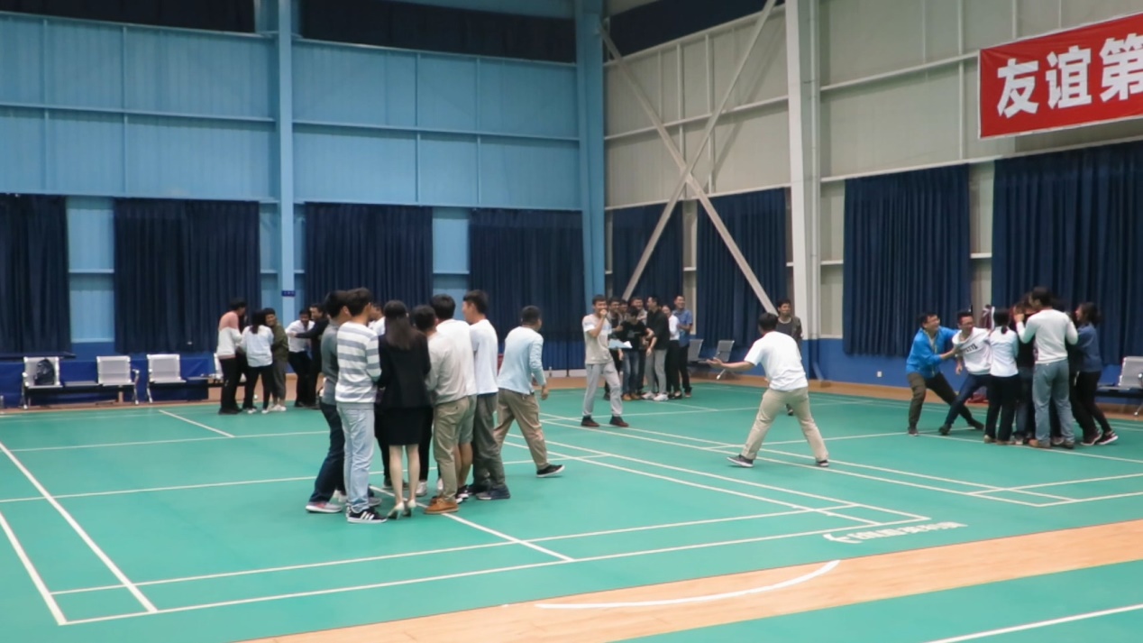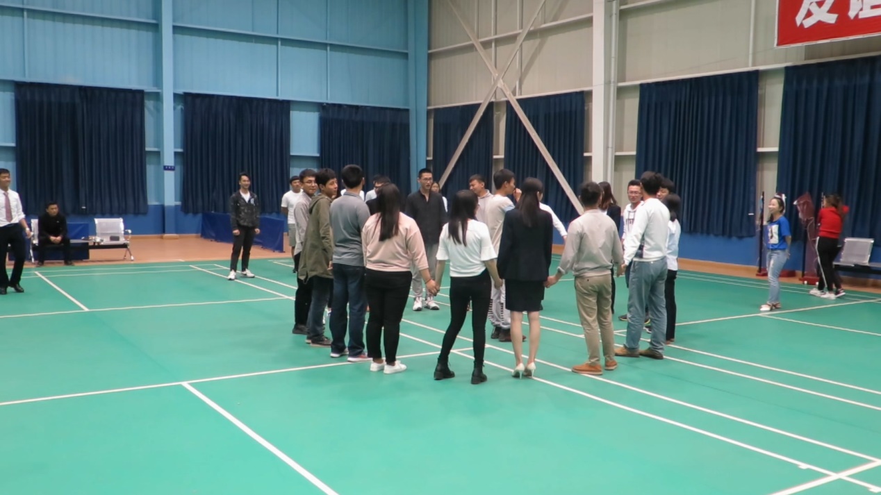在主持人的安排下,大家圍成一圈做“馬蘭花開”游戲,在主持人發(fā)出“開8朵”的指令后,大家8人一組緊緊圍成一團(tuán),沒有湊夠人數(shù)的隊(duì)員只能按照主持人說出的懲罰規(guī)則按要求擺出動(dòng)作。