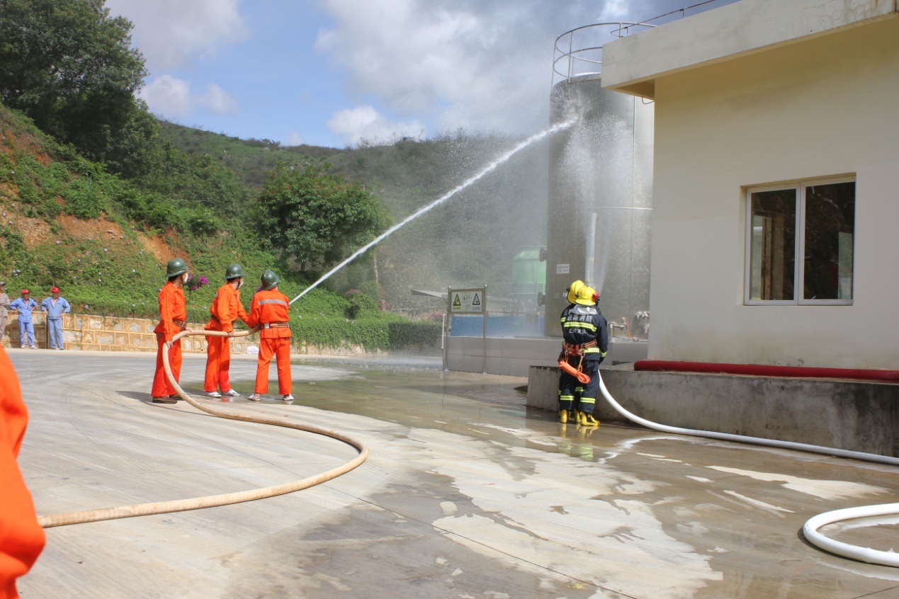 上午10點(diǎn),以安全、消防、環(huán)保為主題的應(yīng)急救援演練在開遠(yuǎn)分公司膨化硝酸銨炸藥生產(chǎn)線水油相制備工房外停車場(chǎng)進(jìn)行,主要模擬硝酸銨溶液儲(chǔ)罐保溫夾層內(nèi)材料熱分解冒煙后的應(yīng)急處置演練。
