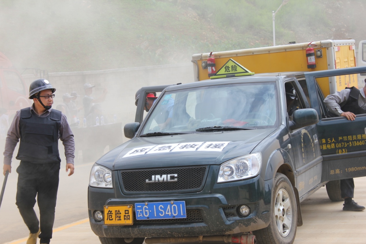 2018年6月29日, 開遠(yuǎn)分公司組織開展2018年政企聯(lián)合應(yīng)急救援演練。紅河州工業(yè)和信息化委員會(huì)、開遠(yuǎn)市工業(yè)商務(wù)和信息化局、開遠(yuǎn)市公安局東城派出所相關(guān)領(lǐng)導(dǎo)蒞臨演練現(xiàn)場(chǎng)指導(dǎo);開遠(yuǎn)市消防大隊(duì)、開遠(yuǎn)市公安局東城派出所、開遠(yuǎn)市遠(yuǎn)安民用爆破器材運(yùn)輸有限公司、內(nèi)蒙古瑞德保安服務(wù)有限公司派人員參加應(yīng)急救援演練。演練由州工信委副調(diào)研員漆建平擔(dān)任指揮部總指揮,分公司經(jīng)理助理胡濤擔(dān)任現(xiàn)場(chǎng)總指揮。