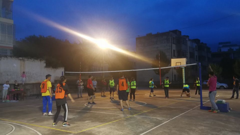 賽場(chǎng)上隊(duì)員們的激烈拼搏,賽場(chǎng)外跳廣場(chǎng)舞的退休老職工、打籃球的職工子女、健身器材上鍛煉的青年職工使傍晚的燈光球場(chǎng)熱鬧非凡,盡顯一幅“和諧安化大家庭” 其樂(lè)融融景象。