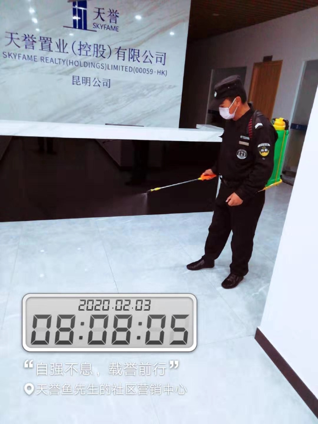 2月3日,安化地產(chǎn)公司物業(yè)管理對(duì)售樓中心、樣板房區(qū)和辦公區(qū)進(jìn)行消毒處理,提前作疫情防控處理準(zhǔn)備。