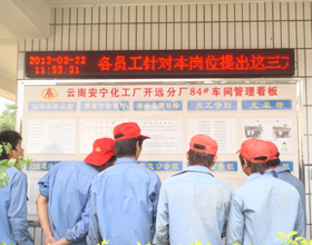 開遠分廠車間黨支部自今年以來,根據(jù)上級黨委、總支的要求,結(jié)合自身實際情況,緊緊圍繞支部年度工作計劃,在車間辦公室和生產(chǎn)工序醒目和安全允許的位置,分別建立了黨員管理看板和黨支部宣傳板;展開了在職工群眾中以“建文明黨支部、樹文明黨員形象、亮明黨員身份”為載體,以“我是黨員我?guī)ь^”為行動指南的活動,此舉將共產(chǎn)黨員的先峰模范帶頭作用很好地貫穿在了日常安全生產(chǎn)工作中,也用實際行動詮釋著做為一名共產(chǎn)黨員的意義;同時將整個車間支部和黨員的工作和言行更好地置于職工群眾的監(jiān)督之下,為車間支部今年的各項工作構(gòu)建了新的局面和開了好頭。