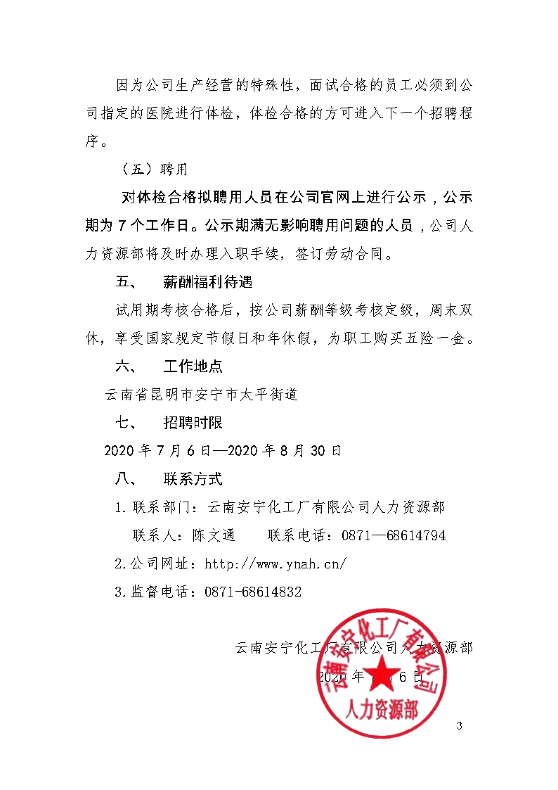 云南安寧化工廠(chǎng)有限公司2020年招聘高校畢業(yè)生公告