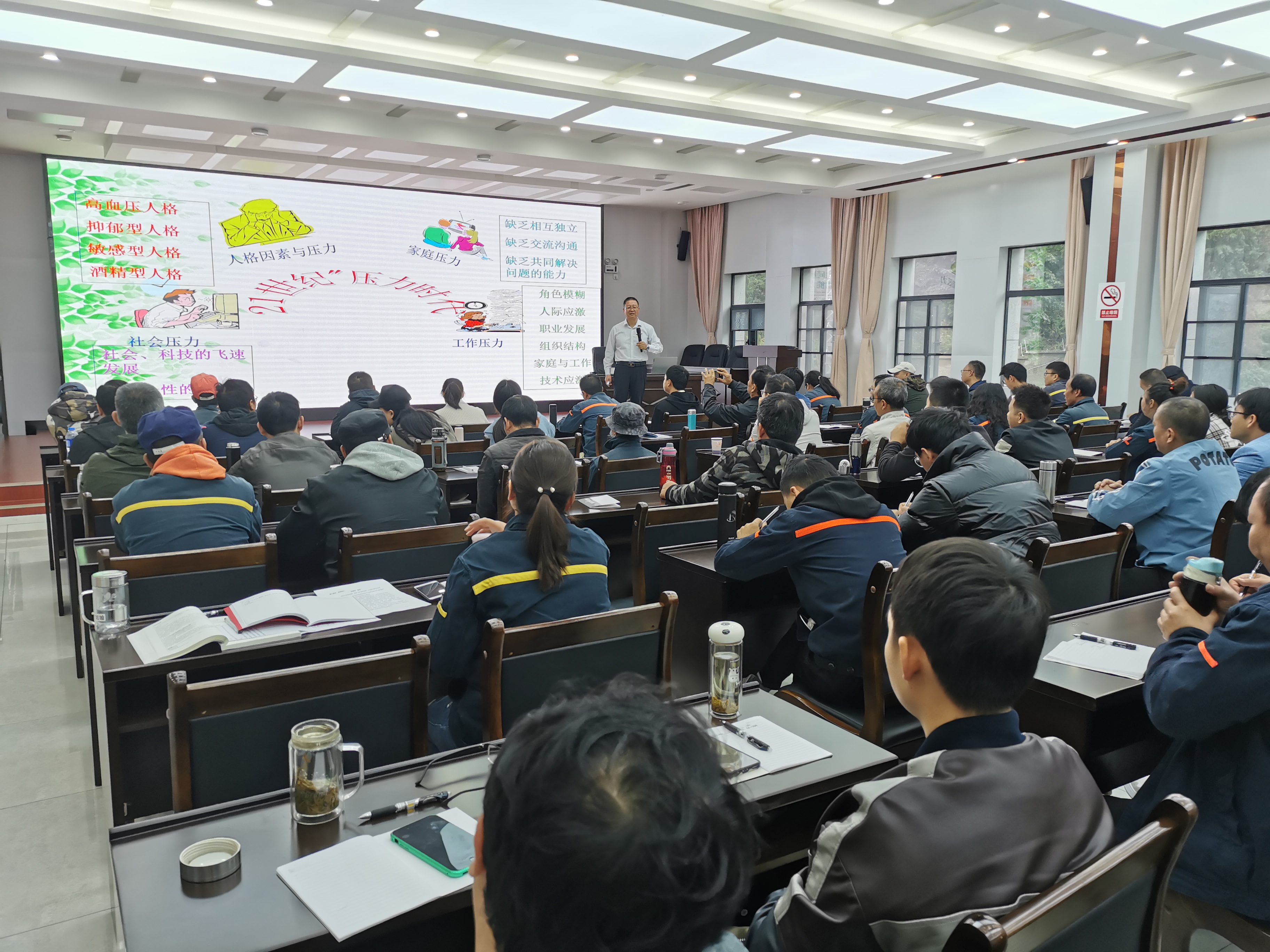 外訓(xùn)主要以關(guān)注職工的心理健康和壓力調(diào)試,特別邀請(qǐng)了國(guó)家二級(jí)心理咨詢師、云南省心理學(xué)會(huì)會(huì)員朱景忠老師,以《快樂生活 幸福工作》為題,圍繞“認(rèn)識(shí)自己、準(zhǔn)確定位;處理好與環(huán)境的關(guān)系;處理好人與人的關(guān)系;處理好與家庭的關(guān)系”四個(gè)方面,從黨史故事到社會(huì)現(xiàn)狀,從詩(shī)詞歌賦到人生哲理,結(jié)合個(gè)人多年的親身經(jīng)歷和實(shí)踐經(jīng)驗(yàn),用通俗易懂的語(yǔ)言,深入淺出地為廣大職工解決工作和生活中的困惑“送湯送藥”,為職工講述了一堂生動(dòng)有趣的課程。