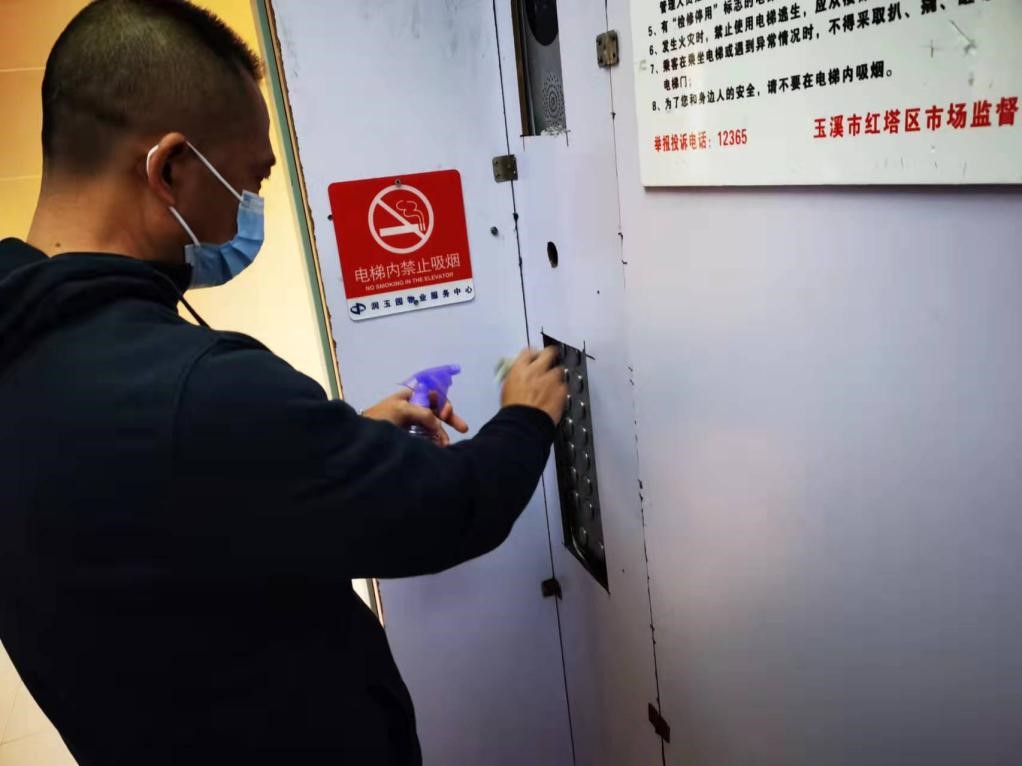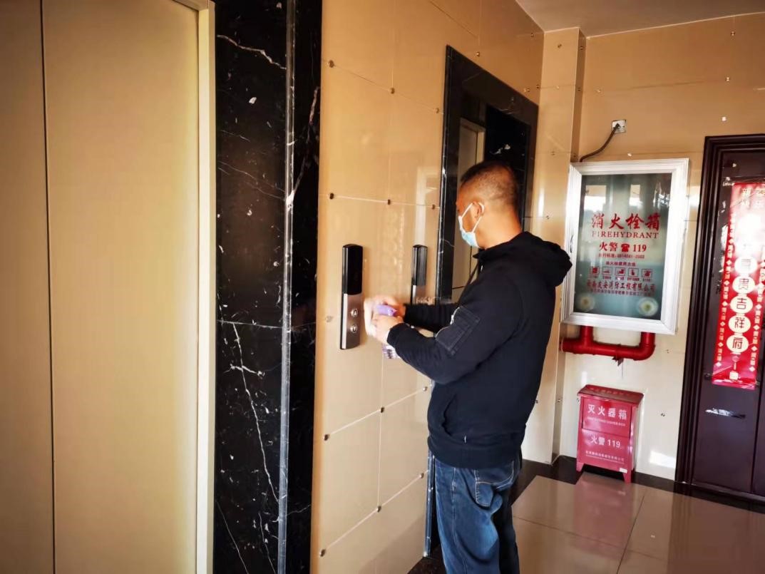 小事一:自新冠疫情襲來(lái),金偉同志一直積極配合所居住社區(qū)做好防疫工作。在工作之余,休息時(shí)間,他自帶消毒衛(wèi)生物品,每天定期對(duì)其居住小區(qū)電梯設(shè)施集中消毒,協(xié)助保潔員對(duì)垃圾、污染物進(jìn)行清理清掃。