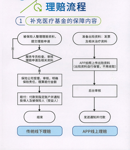 補充醫(yī)療保險的理賠方式主要分為“APP線上理賠”和“傳統(tǒng)線下理賠”,其相應(yīng)的理賠流程如下:
