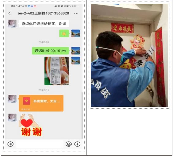設(shè)施維護(hù)、入戶維修、值守查碼、消殺保潔、外出購物卡發(fā)放、宣傳安撫住戶、為7天居家隔離戶做醫(yī)學(xué)隔離措施、運(yùn)送生活所需物資、配合醫(yī)護(hù)人員完成隔離戶核酸檢測(cè)……一切都井然有序。