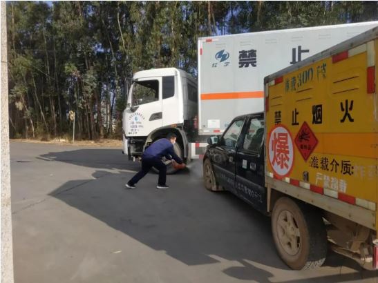 演練模擬2023年1月6日9時30分,安化駕駛員郭濤駕駛云AK5721號重型廂式貨車由安化安寧分公司前往安寧(北向南),行至中達(dá)停車場門口時,遇中達(dá)駕駛員許北云駕駛云AY7U27號輕型廂式貨車行駛至此(東向西),因該路段為右轉(zhuǎn)彎路段、柏油路面,加之因下雨導(dǎo)致路面濕滑,許北云駕車時對路面動態(tài)觀察不足,致本車左前車頭與郭濤駕駛的云AK5721左側(cè)油箱相撞,導(dǎo)致云AK5721號車油箱漏油起火。