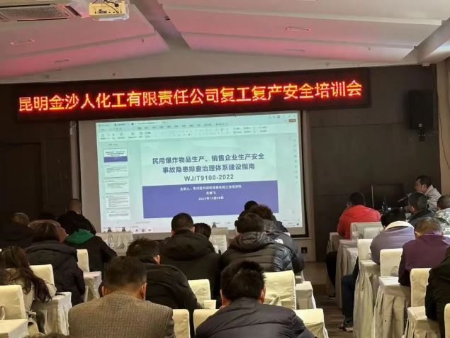 金沙人化工有限責任公司在迎接復工復產(chǎn)的重要時刻,邀請上級監(jiān)管部門東川區(qū)科技和信息化局的專業(yè)人員于2023年12月26日為公司全體員工開展安全教育培訓。