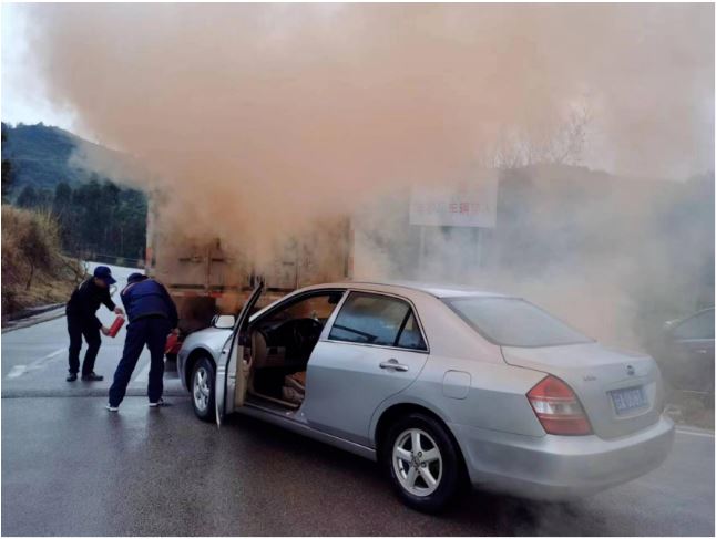 本次演練是模擬公司危貨運(yùn)輸車裝載成品后由安寧分公司后門駛出,一輛小轎車因右轉(zhuǎn)時(shí)車速過快,小轎車車頭追尾危貨運(yùn)輸車后貨廂尾部,導(dǎo)致小轎車車頭起火。駕駛員及押運(yùn)員在第一時(shí)間迅速向公司報(bào)告并報(bào)警,立即處置初起火災(zāi)。公司接到事故報(bào)告后立即對(duì)事故進(jìn)行分析研判后果斷決定組織應(yīng)急隊(duì)伍到現(xiàn)場(chǎng)開展應(yīng)急救援處置。經(jīng)過現(xiàn)場(chǎng)人員全力有序配合,迅速把初起火災(zāi)撲滅,未造成人員傷亡和過大的財(cái)產(chǎn)損失。演練過程按照應(yīng)急演練方案進(jìn)行,組織有力、分工明確、處置得當(dāng),達(dá)到預(yù)期效果。