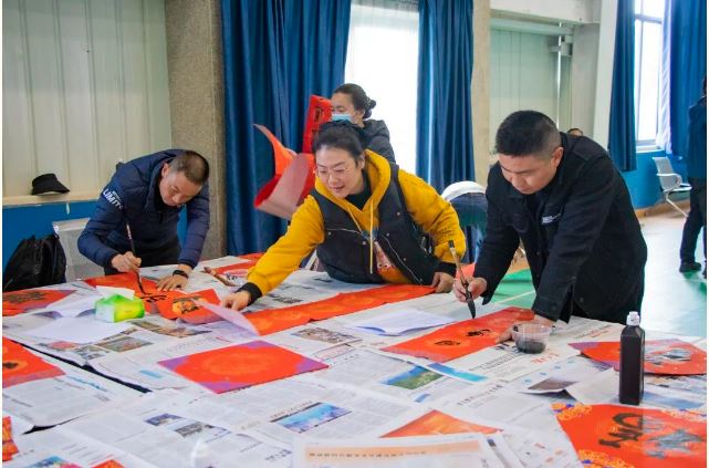 下午1點(diǎn),“送萬福·進(jìn)萬家”迎新春書法文化公益活動(dòng)、趣味飛鏢、趣味套圈、粘靶投擲、蒙眼敲鑼、盆滿缽滿、步步為營、母雞下蛋、蒙眼對決等個(gè)人及團(tuán)隊(duì)游戲在總部羽毛球館拉開序幕,每一個(gè)游戲都在挑戰(zhàn)參與者的技巧和運(yùn)氣,贏下游戲獲得獎(jiǎng)券,集滿1—10張獎(jiǎng)券就可以兌換不同的新春獎(jiǎng)品。
