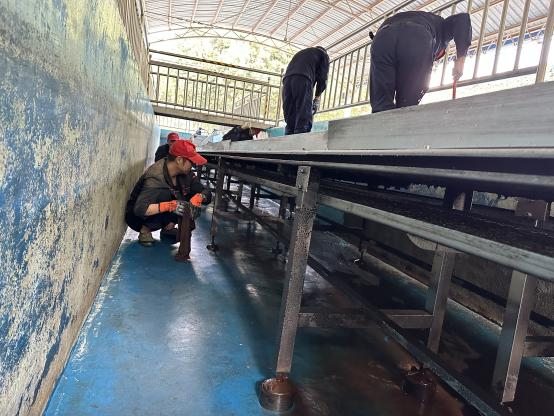 維護(hù)現(xiàn)場,在分公司負(fù)責(zé)人的帶領(lǐng)下,分公司職工利用短暫的停產(chǎn)間隙,加班加點(diǎn)對(duì)水相區(qū)域、一號(hào)線生產(chǎn)現(xiàn)場等關(guān)鍵設(shè)備設(shè)施進(jìn)行翻新、維護(hù)和保養(yǎng),為完成本年度后續(xù)生產(chǎn)任務(wù)做好準(zhǔn)備。