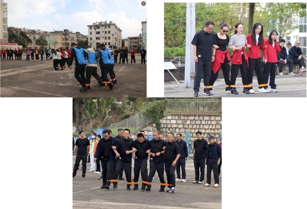 五人六足比賽中,隊員們綁緊腳踝、同步邁步,從起初的小心翼翼到后來的穩(wěn)步前行,每一步都彰顯著 “步調一致才能得勝利”的團隊智慧。