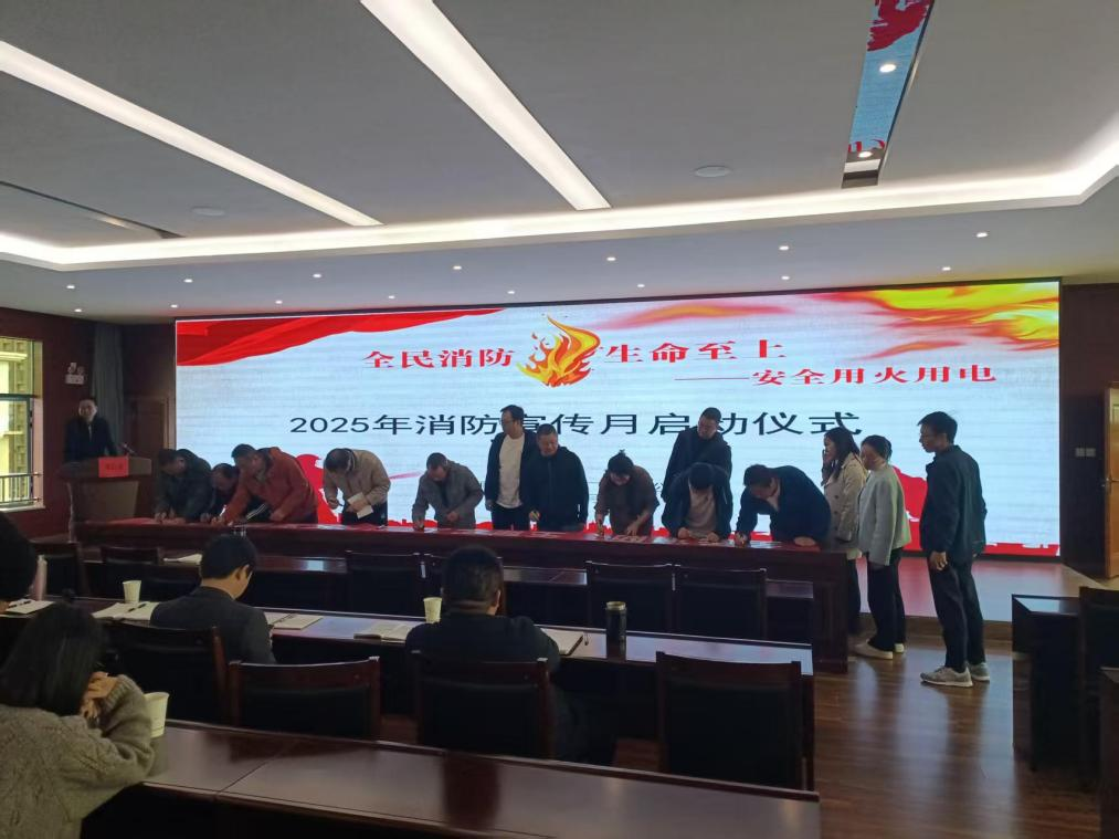 啟動會尾聲的主題布標簽名環(huán)節(jié)將現(xiàn)場氛圍推向高潮。印有“全民消防,生命至上——安全用火用電”的布標上,參會人員依次鄭重簽下自己的名字。這一個個簽名不僅是對消防安全責任的莊嚴承諾,更凝聚起全員參與消防、共筑安全防線的堅定決心 。