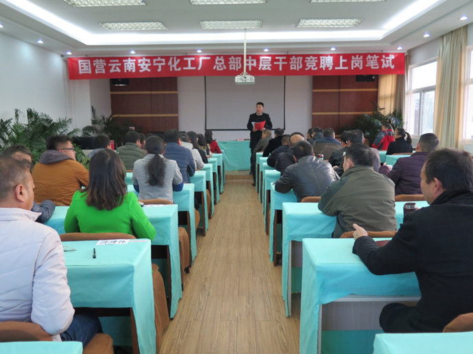 為進(jìn)一步深入開展工廠管理提升工作,建立健全科學(xué)的干部選拔、評(píng)聘機(jī)制,促進(jìn)干部培養(yǎng)、人才梯隊(duì)建設(shè),根據(jù)第十二屆三次職工代表大會(huì)上通過的《國(guó)營(yíng)云南安寧化工廠競(jìng)聘上崗實(shí)施方案》,2017年1月17日-19日,工廠完成了總部職能部門中層管理人員的競(jìng)聘工作。