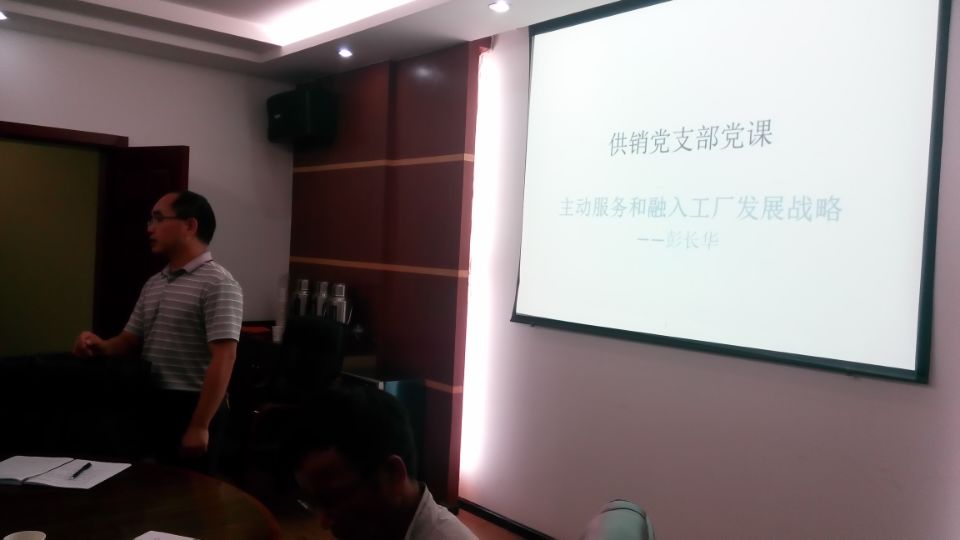 2017年9月27日19:30,供銷支部在辦公樓三樓會(huì)議室組織召開(kāi)支部換屆后的首次支部黨員大會(huì),主要內(nèi)容是黨課教育。黨支部書(shū)記陸永軍主講的廉潔教育《在云南、黨員干部如何過(guò)中秋才不會(huì)“攤上事”》和彭長(zhǎng)華副廠長(zhǎng)的《主動(dòng)服務(wù)和融入工廠發(fā)展戰(zhàn)略》,內(nèi)容充實(shí),引人自警、自省、自勵(lì),再次升華了“兩學(xué)一做”的精神和內(nèi)涵。